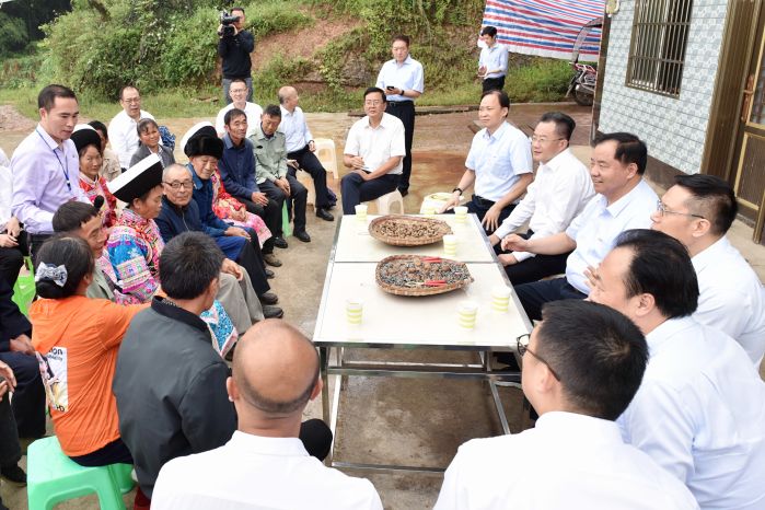 當(dāng)天,陳肇雄一行深入到敘永縣白臘苗族鄉(xiāng)高峰村黨群服務(wù)中心、白臘苗族鄉(xiāng)亮窗口村電科牛場,了解黨建引領(lǐng)促進(jìn)脫貧攻堅、產(chǎn)業(yè)發(fā)展形成鞏固脫貧成果“造血”機(jī)制情況;走進(jìn)貧困戶家中,仔細(xì)察看了解他們的生活狀況和脫貧情況。